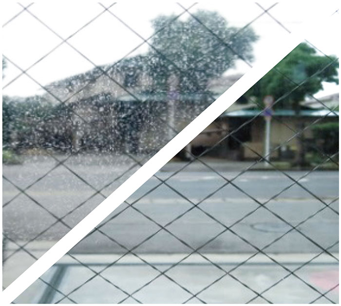 | 特徴 | ●研磨に頼らず液剤をスポンジ、刷毛等で塗り込むことで鱗状痕や水垢を除去します。 ●研磨作業を行わないので、素材を傷つける事無く汚れを除去します。 ●汚れの状態により希釈も可能です。 ●ガラスだけでなく、鏡・洗車機・浴室・トイレなど、様々な箇所にも施工可能です。 |